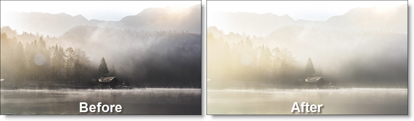 The Fog filter creates a soft, misty atmosphere over the image and glows highlights.
