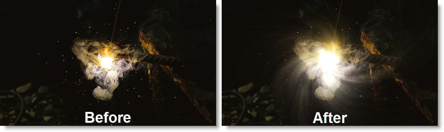Motion blurs the bright areas of the image into streaks defined by From and To locations. This can be used to create an extended film exposure effect or simulate soft beams of light.