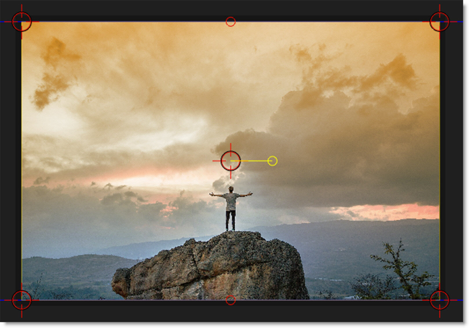 The Gradient Mask consists of a combination of on-screen and toolbar controls. Its direction, corners, size and angle can be adjusted.