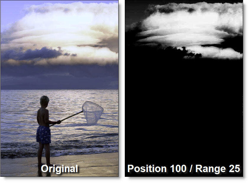 A mask is created based on the hue of the image. When adjusting the Position parameter, you are selecting different hues.