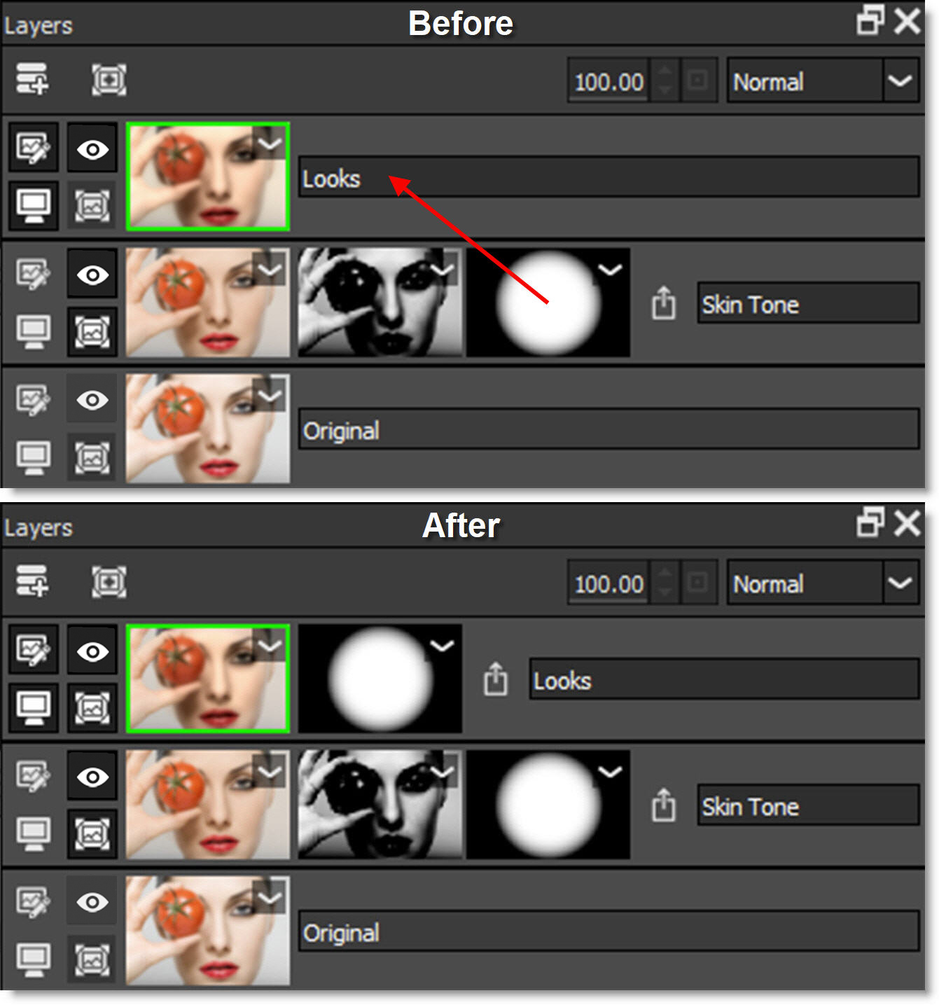 Filters from one layer can replace another layer using drag and drop.