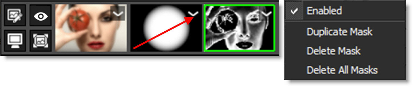 Enables/Disables all masks. A red X appears on the mask thumbnails when disabled.